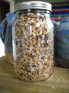 Over the past few years I have been utterly spoiled by my mother-in-law's homemade granola. We all love it! She started with a recipe from Andrew Weil and has adapted and altered it over time to fit her needs. It's really delicious. This morning I cam up with my own version and felt like sharinf. This recipe make almost 2 quart jars worth.